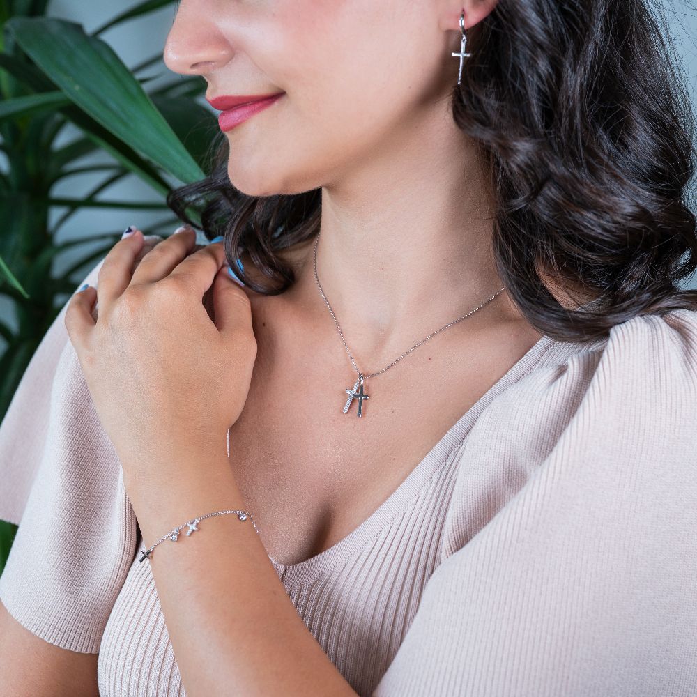 Bratara argint cu pandantive cruce si cubic zirconia Essentials
