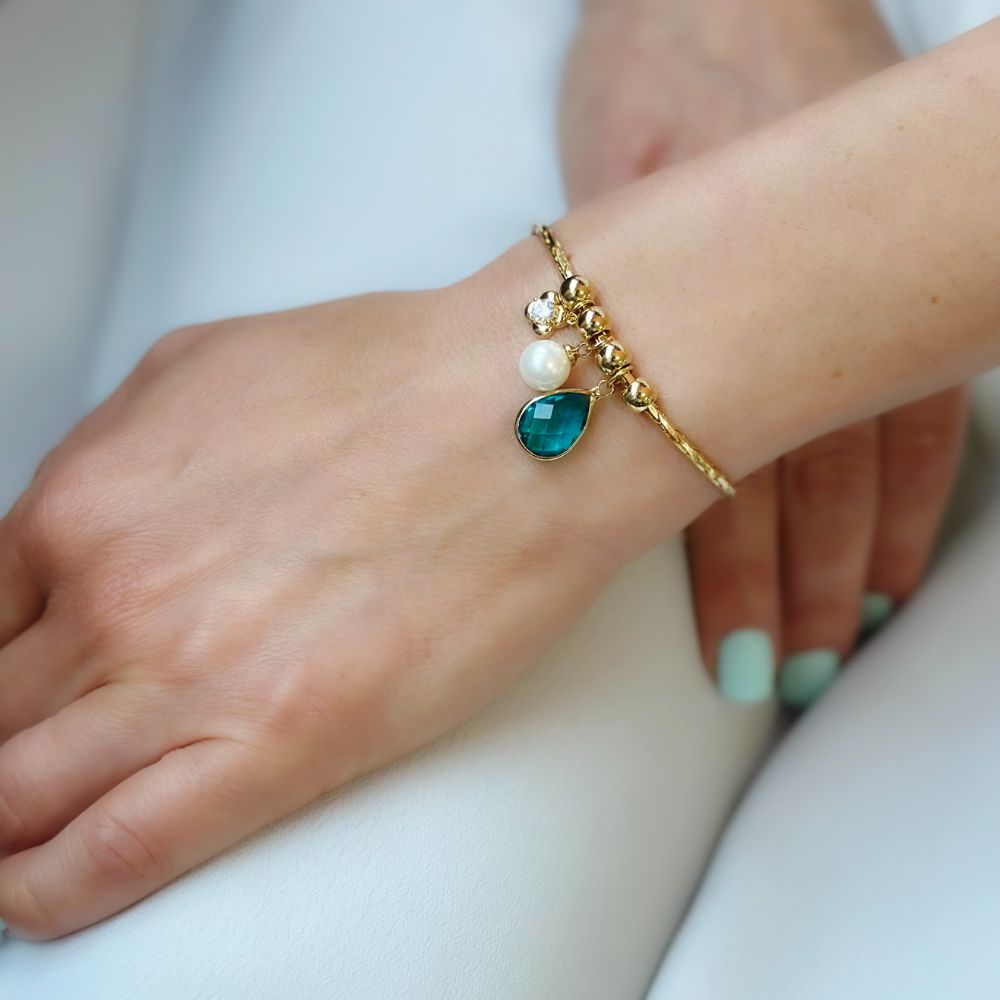 Bratara placata cu aur galben de 18 K decorata cu perle si piatra albastra Dance