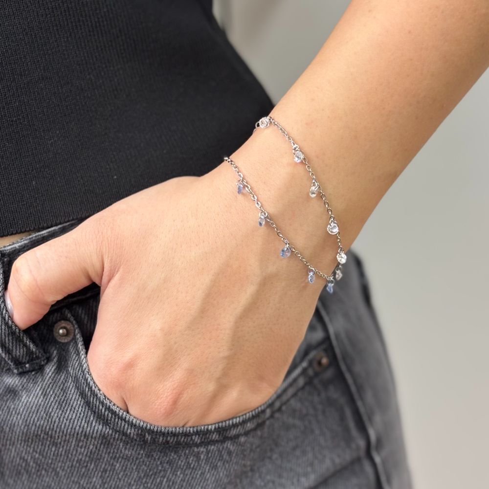 Bratara realizata din argint 925 placat cu rodiu decorata cu pietre cubic zirconia albastre.
