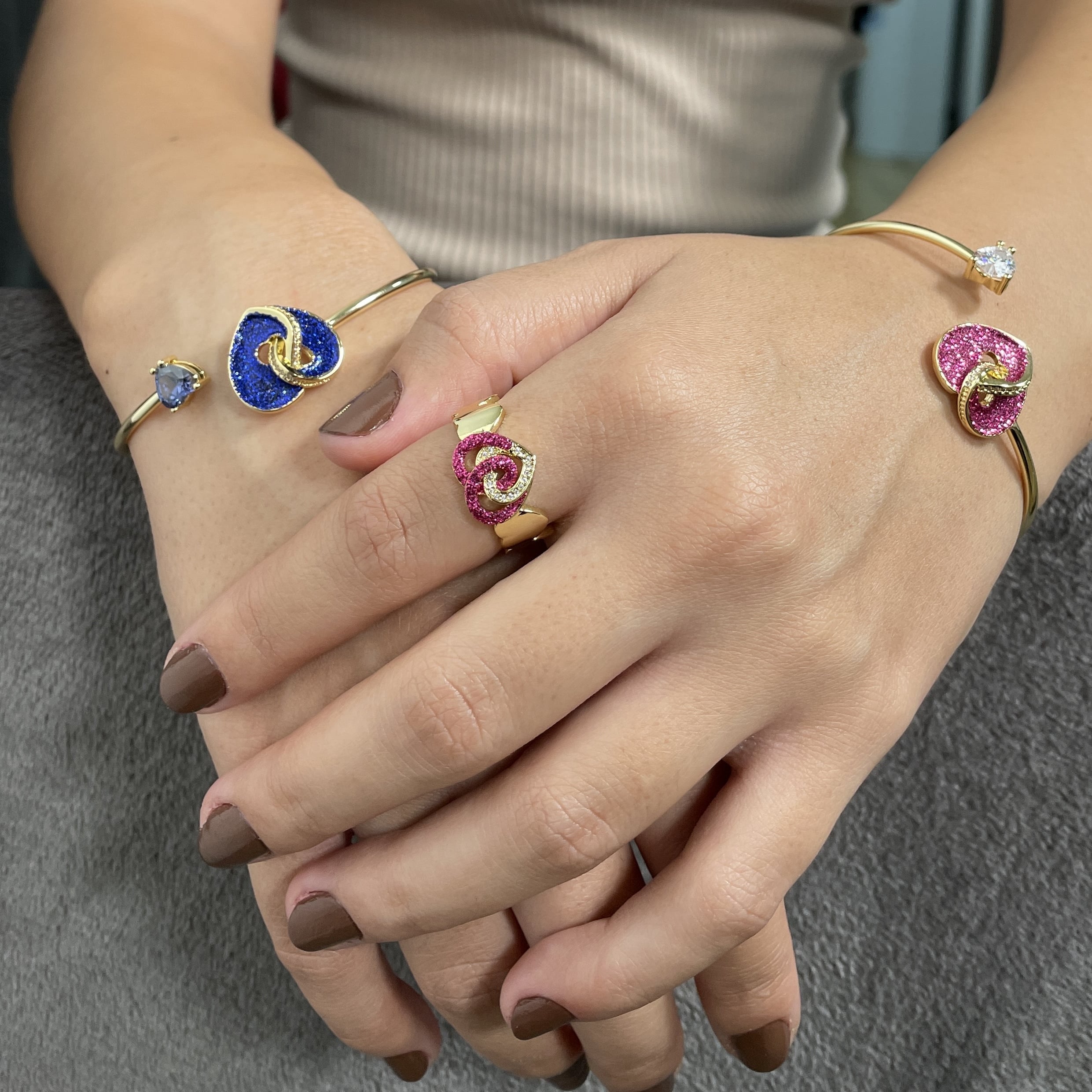 Bratara fixa combina eleganta aurie cu un accent colorat al inimii albastre, oferind un detaliu rafinat pe incheietura. Poate fi purtata singura sau alaturi de bratari fine, completand armonios atat tinute de zi, cat si de seara.