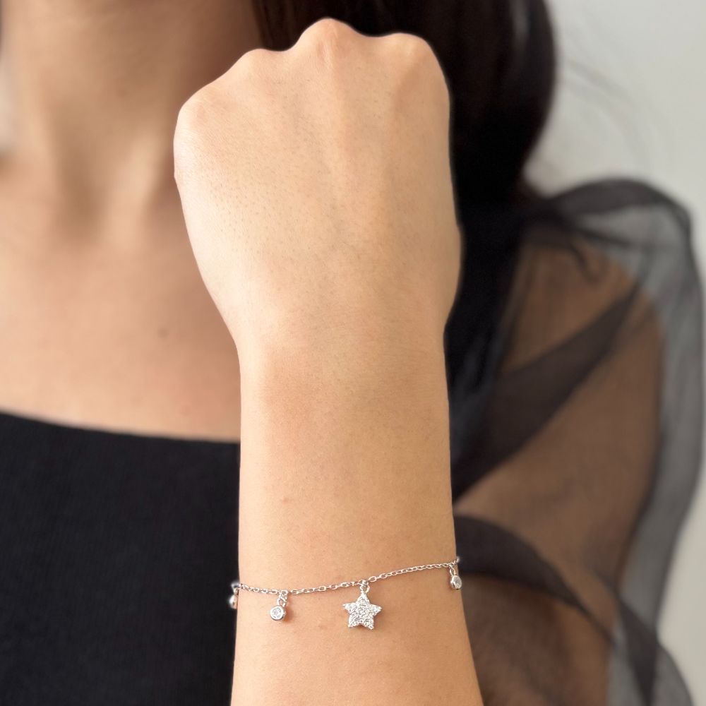 Descrierea produsului Bratara argint cu pandantive stelute si cubic zirconia incolore Essentials: