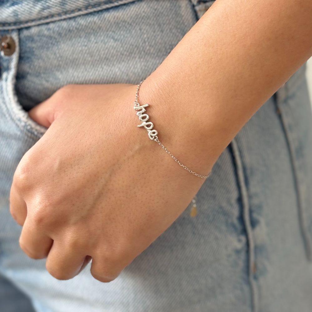 Bratara realizata din argint 925 placat cu rodiu decorata cu pandantiv cu HOPE.