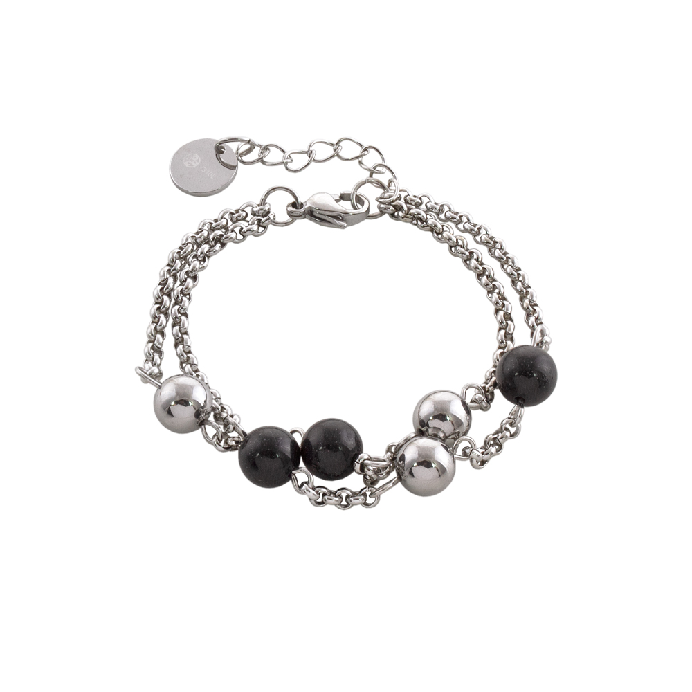 Bratara dubla realizata din otel inoxidabil decorata cu sfere din onix negru.