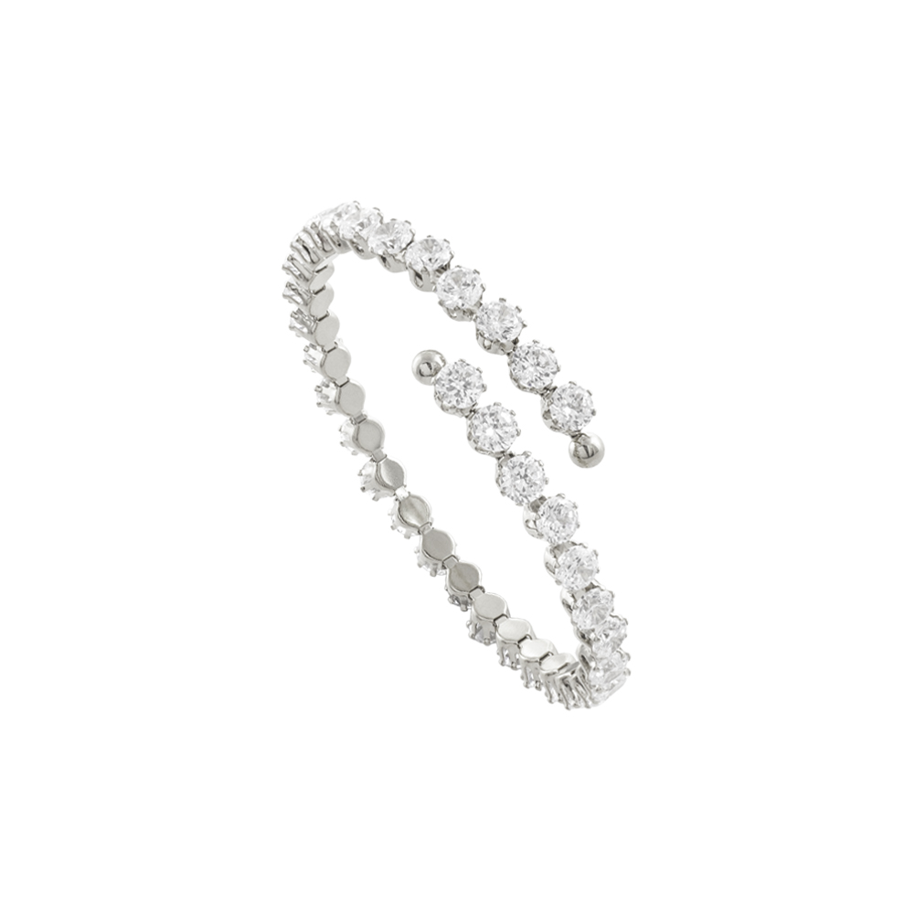 Bratara fixa realizata din otel inoxidabil placat cu rodiu decorata cu pietre cubic zirconia incolore.