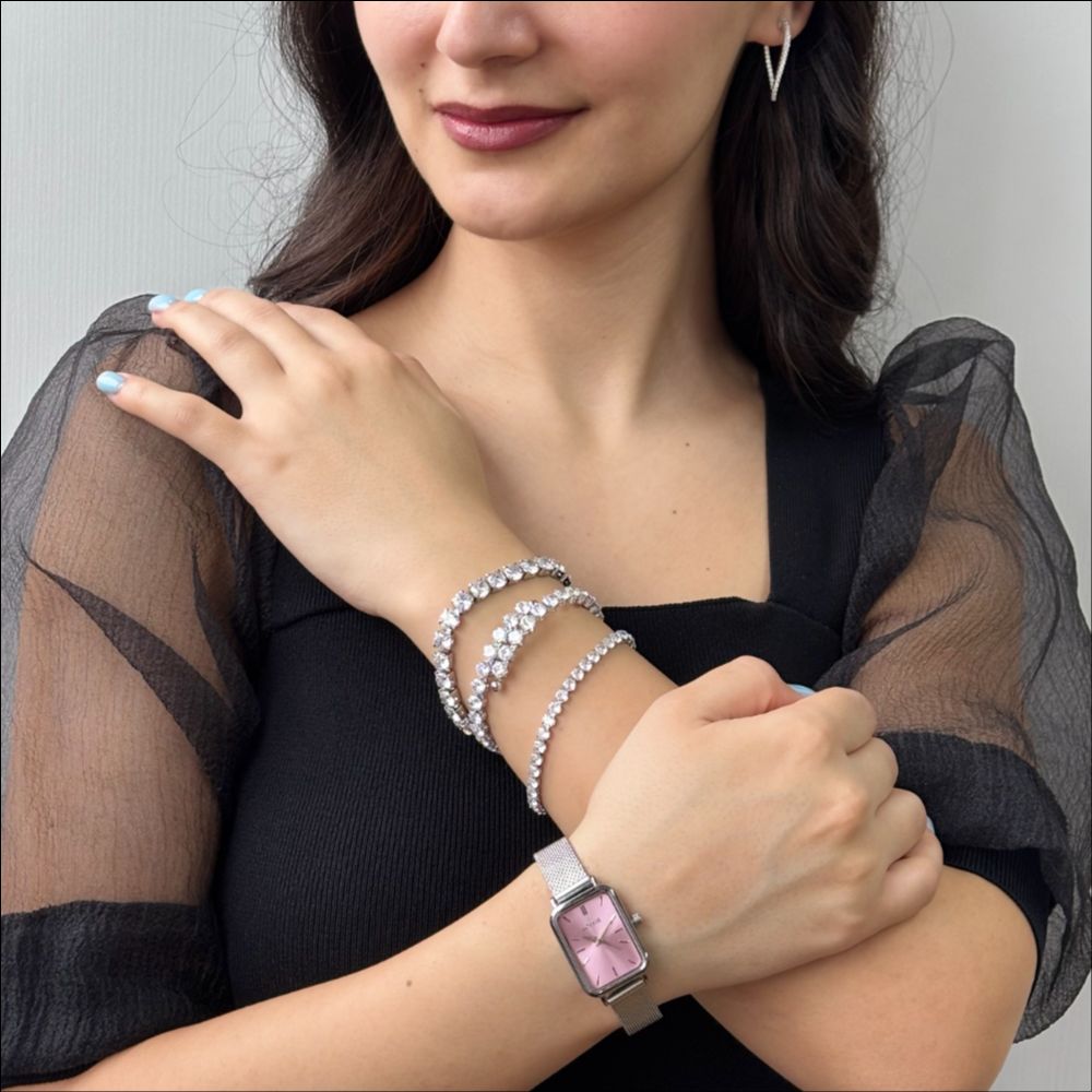 Descrierea produsului Bratara otel inoxidabil fixa cu cristale zirconia incolore Festive: