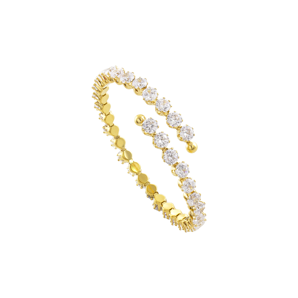 Bratara fixa realizata din otel inoxidabil placat cu aur 18K decorata cu pietre cubic zirconia incolore.