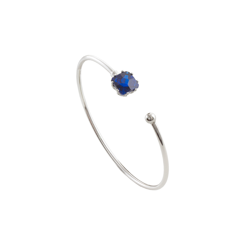 Bratara fixa realizata din argint 925 placat cu rodiu decorata cu cubic zirconia albastra.