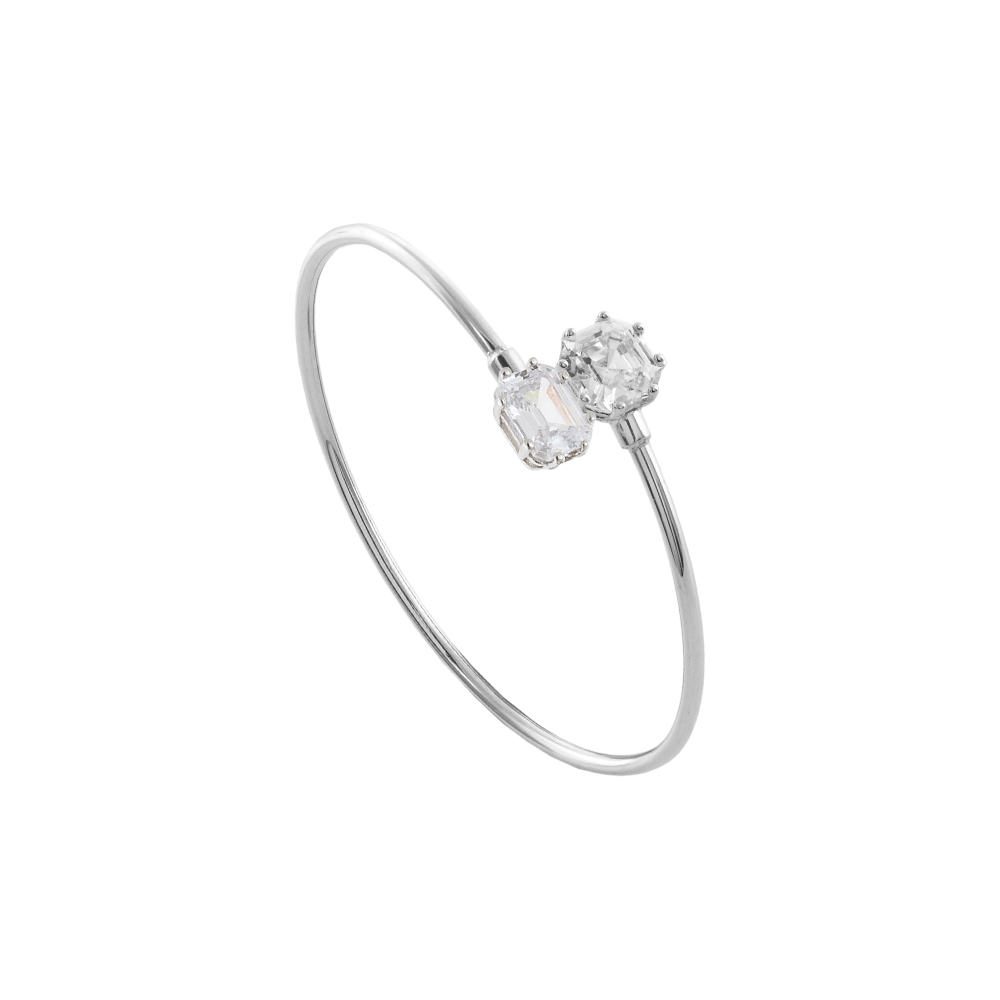 Bratara fixa realizata din argint 925 placat cu rodiu decorata cu pietre cubic zirconia incolore.
