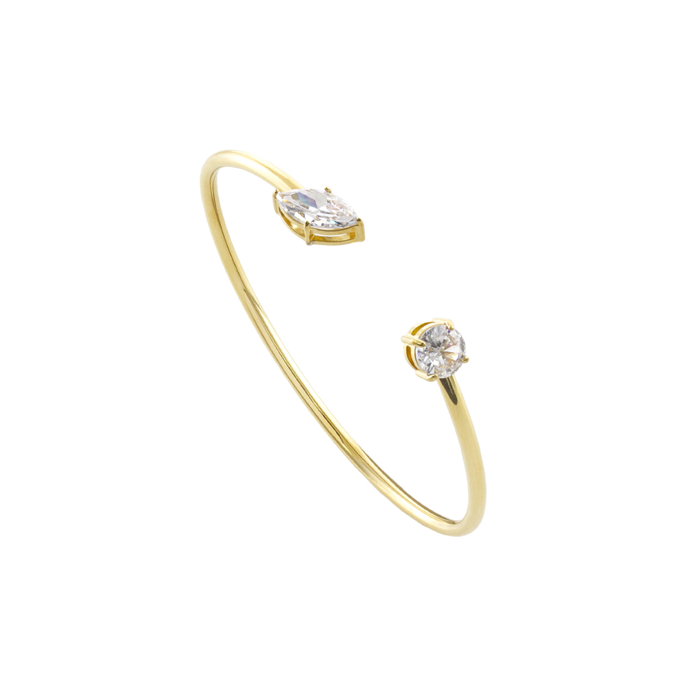 Bratara fixa realizata din otel inoxidabil placat cu aur 18K decorata cu pietre cubic zirconia incolore.