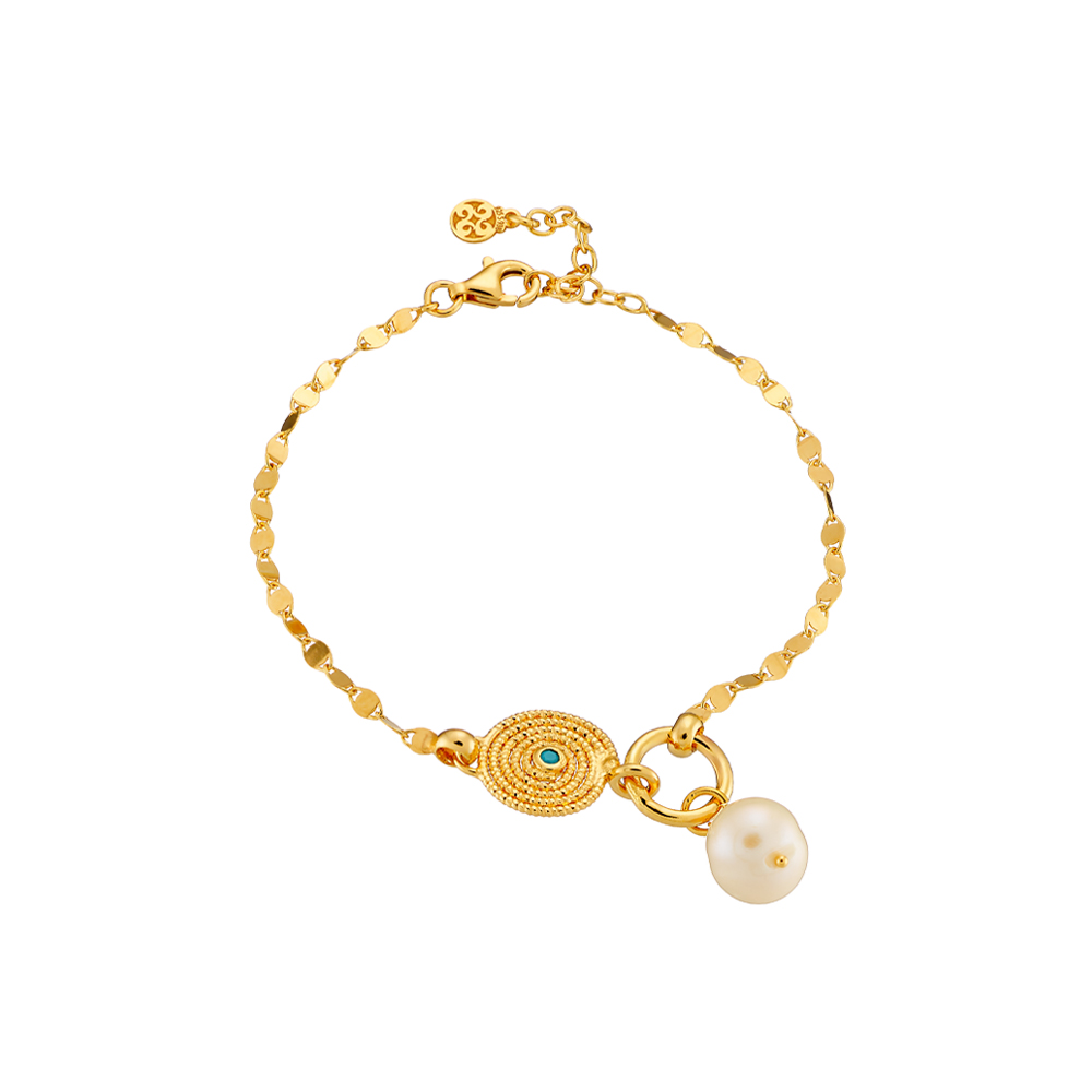 Bratara argint placata cu aur de 18K cu perle si pandantiv spirala Helix, 02X05-02417, Oxette Romania