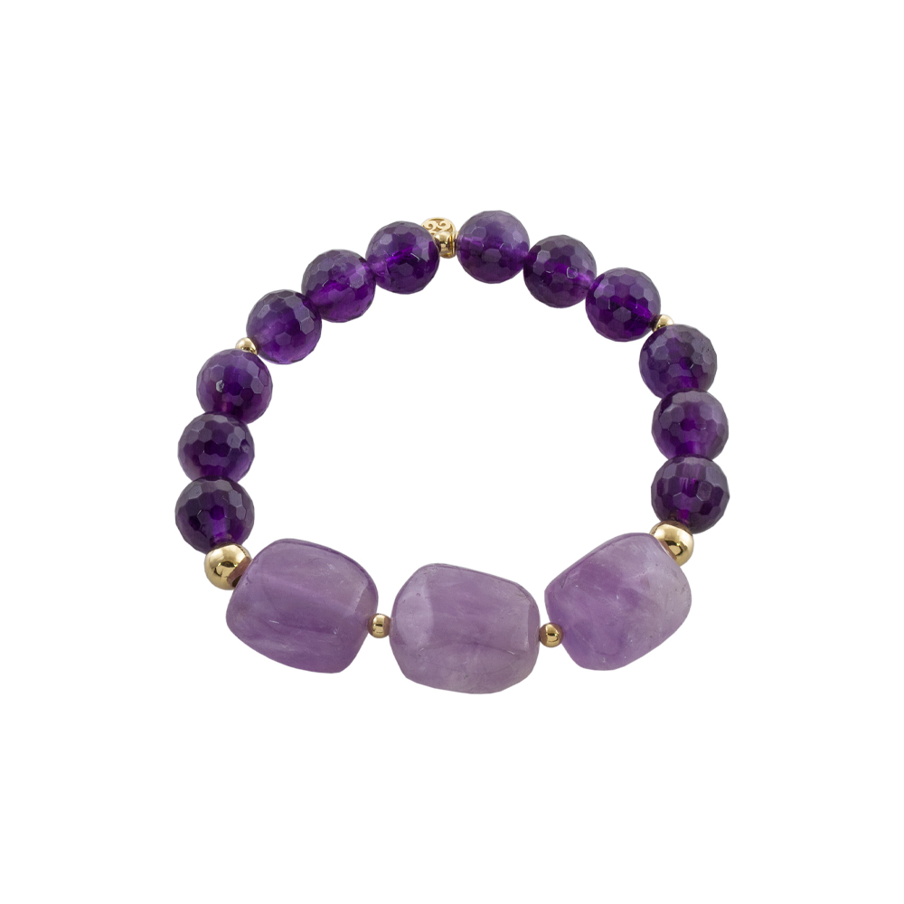Bratara elastica realizata din argint 925 placata cu aur galben de 18K decorata cu agate mov.