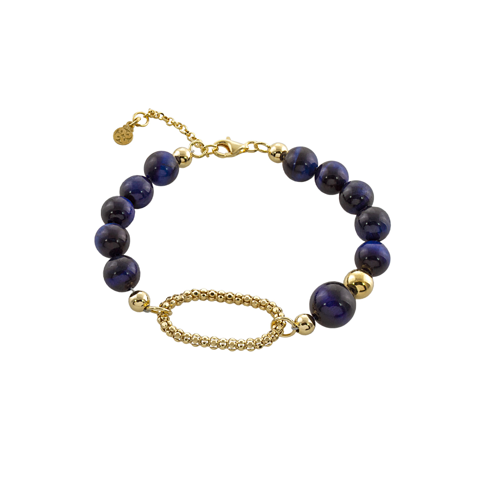 Bratara argint placata cu aur de 18 K cu pietre ochi de tigru albastre Holiday