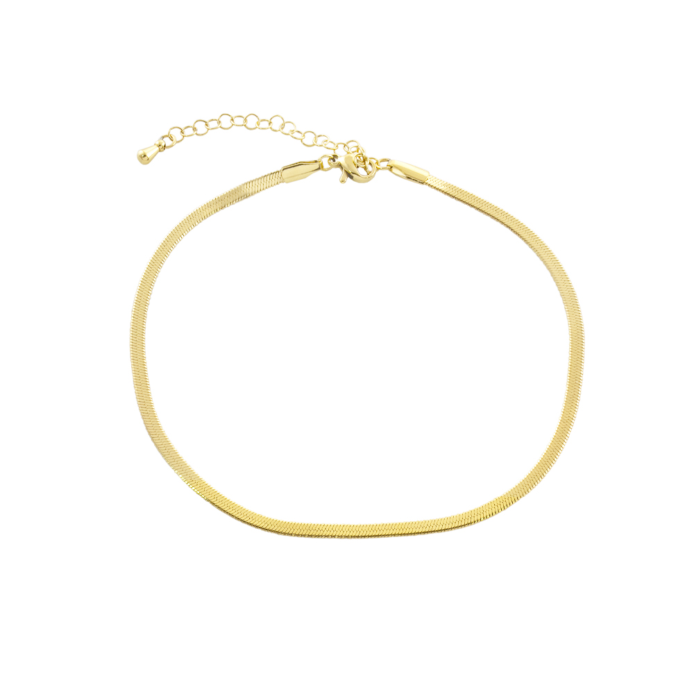 Poarta aceasta bratara cu textura fluida pentru a adauga o nota de stralucire discreta gleznei tale. Designul sau de tip “snake chain” este extrem de confortabil si se muleaza perfect, oferind un aspect pretios si modern in acelasi timp.