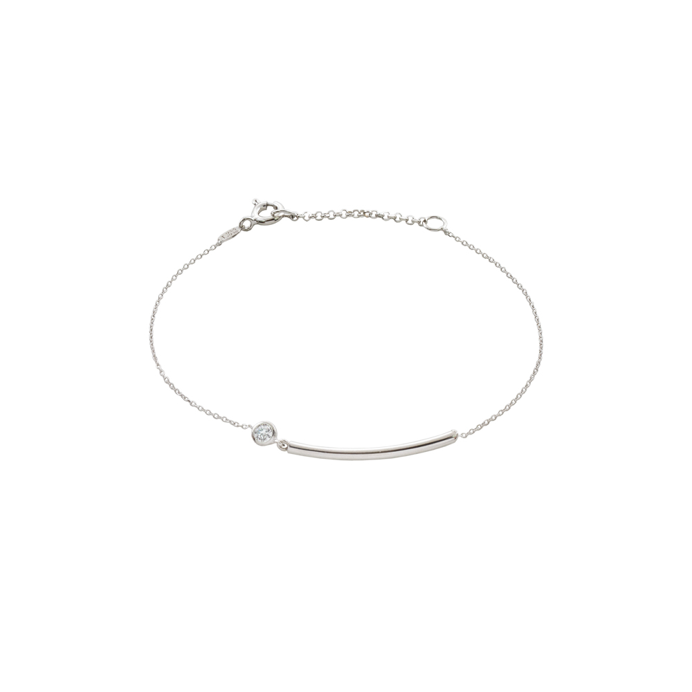 Bratara realizata din argint placat cu rodiu decorata cu element fix tip bara si piatra cubic zirconia incolora.