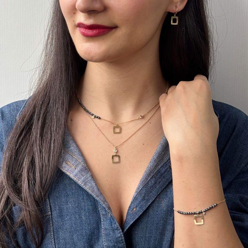 Colier argint placat cu aur 18K cu pandantiv si hematite gri Lovely