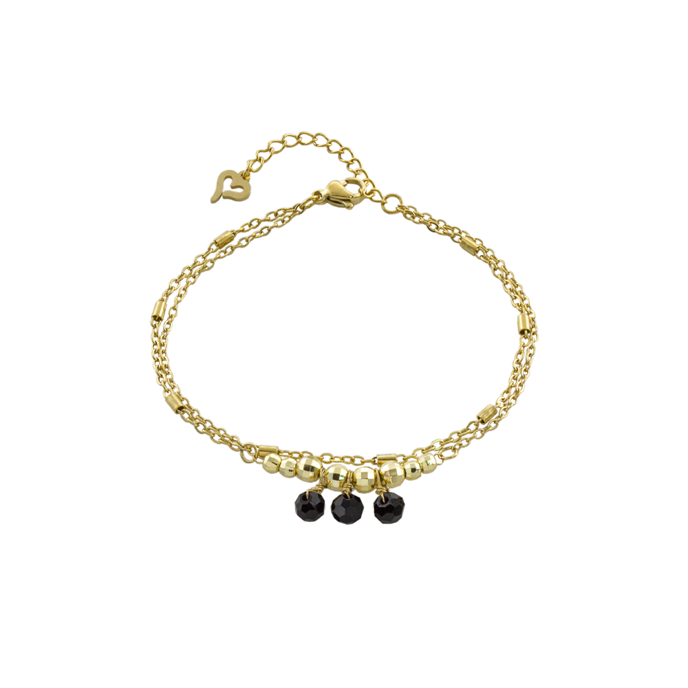 Bratara dubla realizata din otel inoxidabil placat cu aur de 18K decorata cu agate negre.
