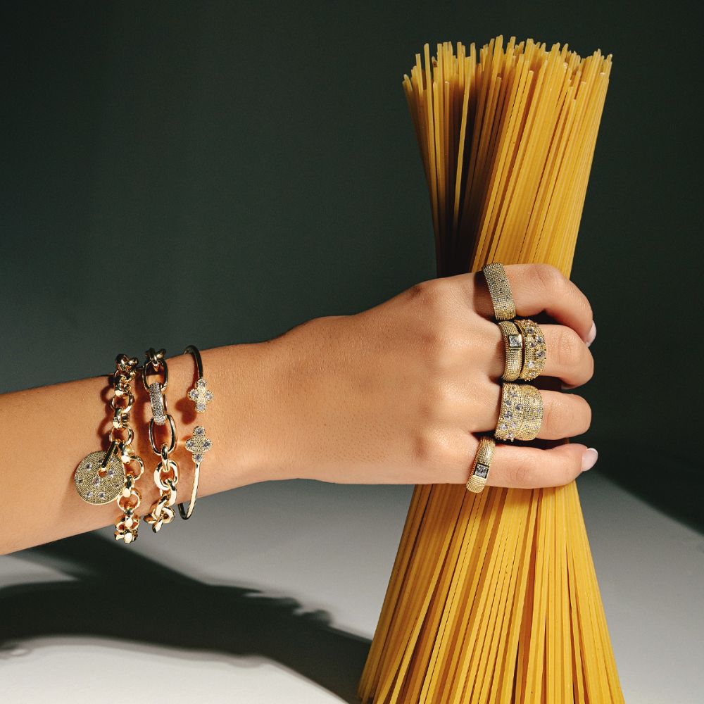 Pentru un look casual si chic, asorteaza bratara cu un tricou simplu din bumbac si o jacheta din denim sau piele. Alege o pereche de pantaloni slim sau o fusta din denim, iar bratara va adauga un strop de stralucire, datorita pietrelor cubic zirconia.