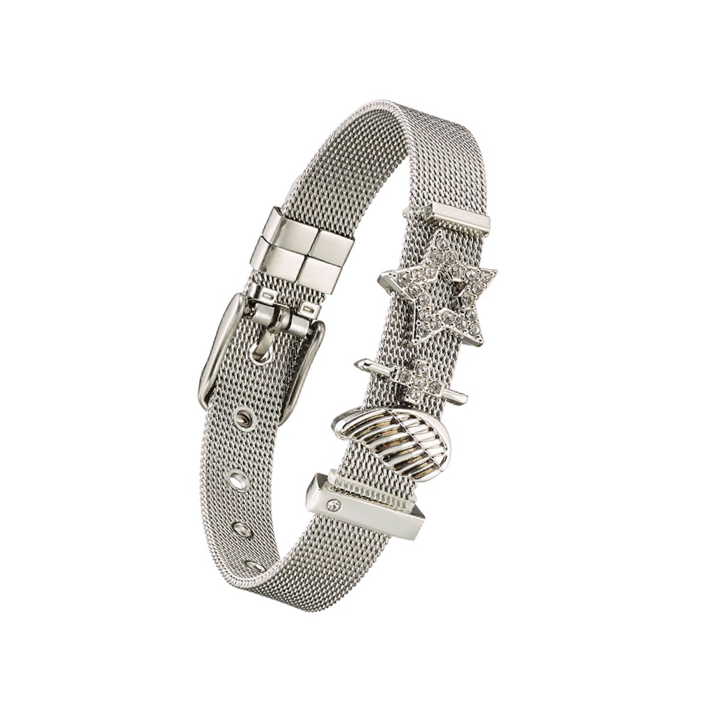 Bratara realizata din otel inoxidabil, decorata cu elemente in forma de aripa, stea cu cristale incolore si cruce. Reprezinta cadoul ideal pentru orice ocazie!