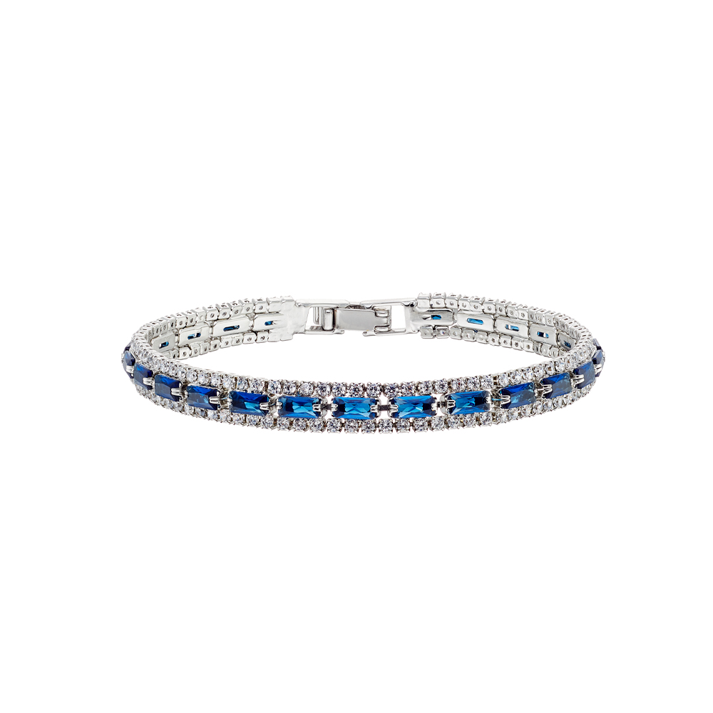 Bratara tennis placata cu rodiu si pietre zirconia albastre si incolore Party