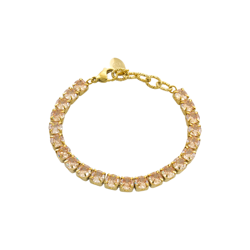 Bratara tennis realizata din otel inoxidabil placat cu aur de 18K decorata cu pietre cubic zirconia sampanie.