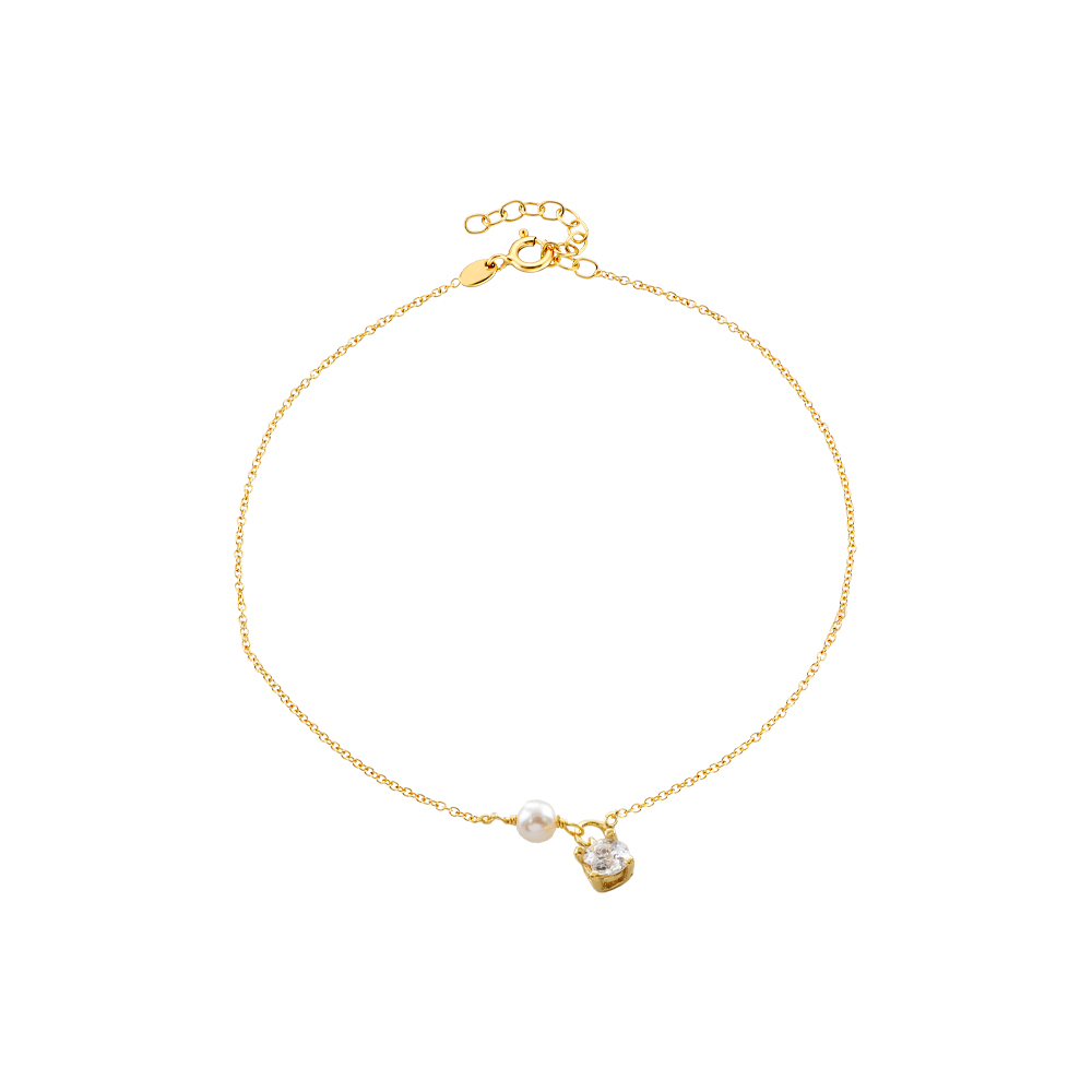 Descrierea produsului Bratara argint placata cu aur de 18K cu piatra zirconia si perle Lovely: