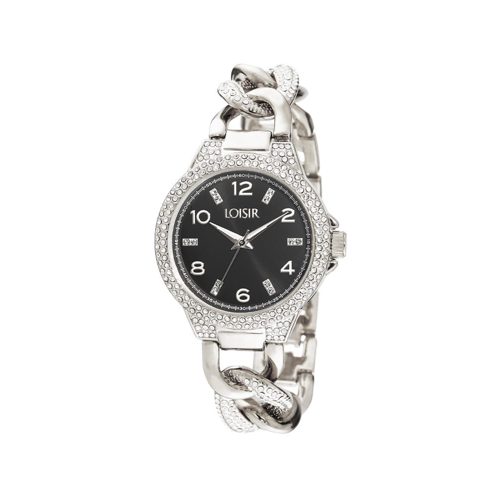 Descrierea produsului Ceas dama bijuterie cu cadran negru si bratara cu zale California: