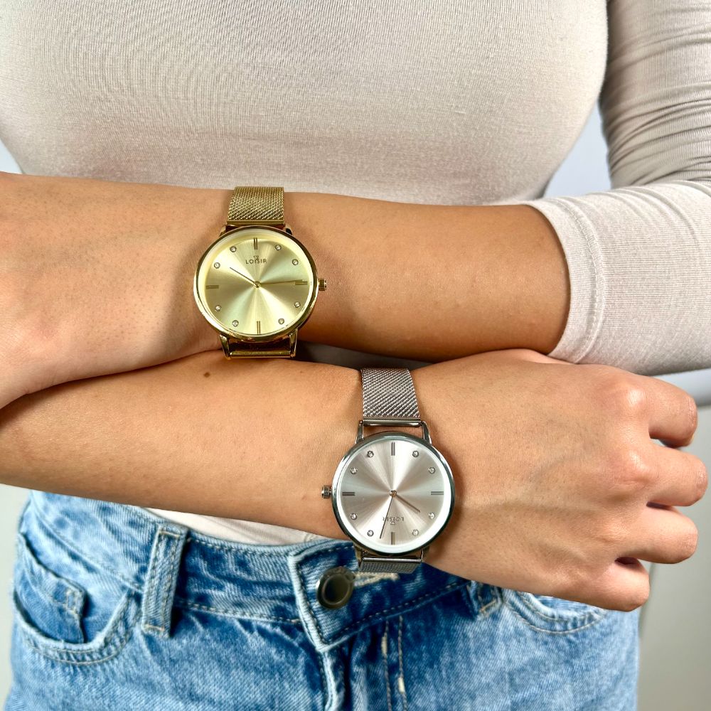 Ceas dama cadran argintiu cu bratara mesh placat cu rodiu Fountain