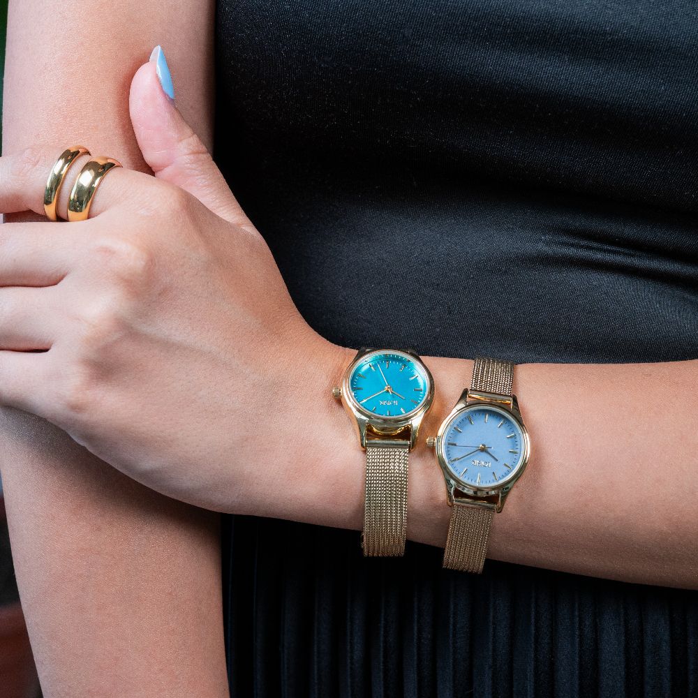 Ceasul Mini Elegance imbina eleganta moderna cu un vibe fresh si sofisticat. Contrastul dintre auriul cald si albastrul profund al cadranului creeaza un efect vizual de impact, facandu-l usor de asortat atat la tinute office, cat si la outfituri smart-casual. Poarta-l ca piesa centrala, fara prea multe alte accesorii, pentru un look curat, chic si on point.