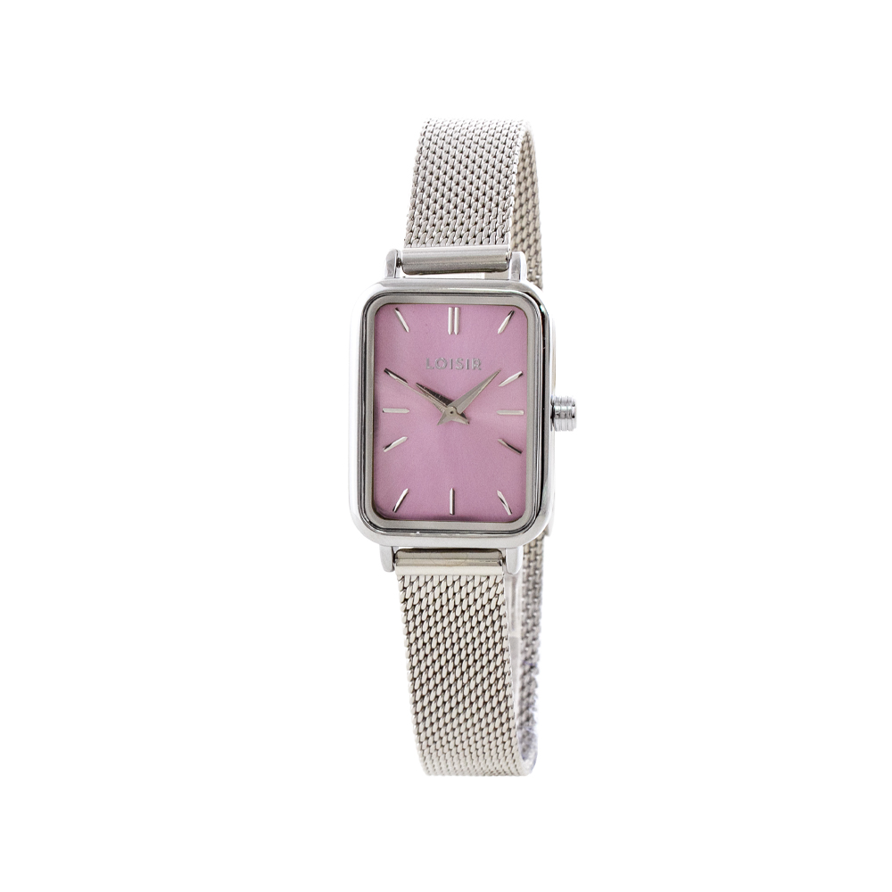 Ceas cu cadran dreptunghiular roz din otel inoxidabil si bratara tip mesh din aliaj placat cu rodiu. Recomandari de purtare: