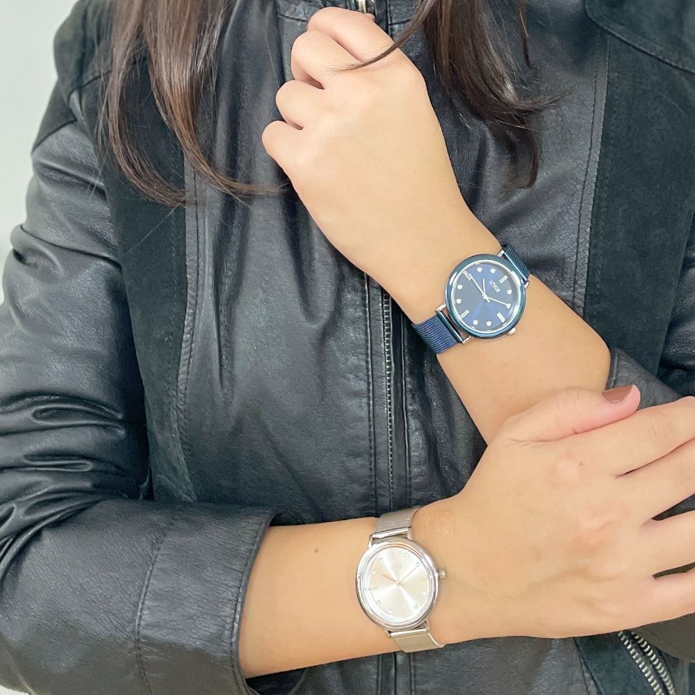 Ceas dama albastru cu cadran negru si bratara mesh Polish