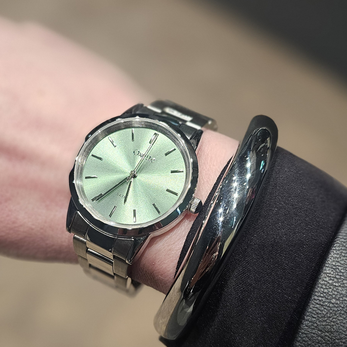 Acest ceas este accesoriul ideal pentru a adauga o nota de prospetime si serenitate look-ului tau. Nuanta pastelata de verde menta a cadranului se armonizeaza perfect cu bratara metalica argintie, creand un aspect modern si foarte “clean”. Poarta-l cu piese vestimentare in nuante de gri perlat, alb mat sau negru, pentru a lasa culoarea cadranului sa fie punctul focal al tinutei.