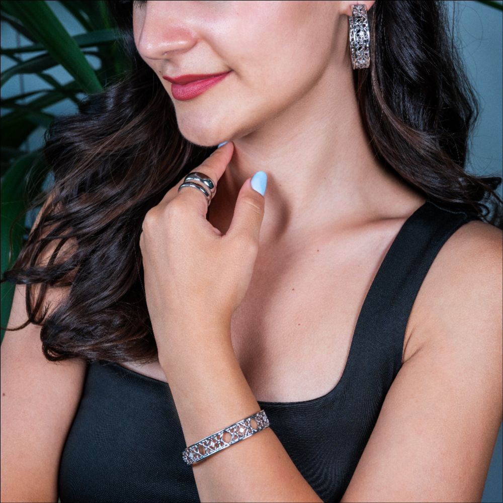 Bratara fixa placata cu rodiu si cubic zirconia incolore Basket, 02L15-01866-2, Oxette Romania