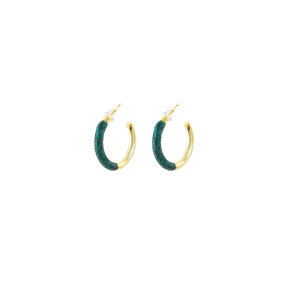 Cercei creole realizati din metal comun placat cu aur galben de 18K presarati cu glitter verde.