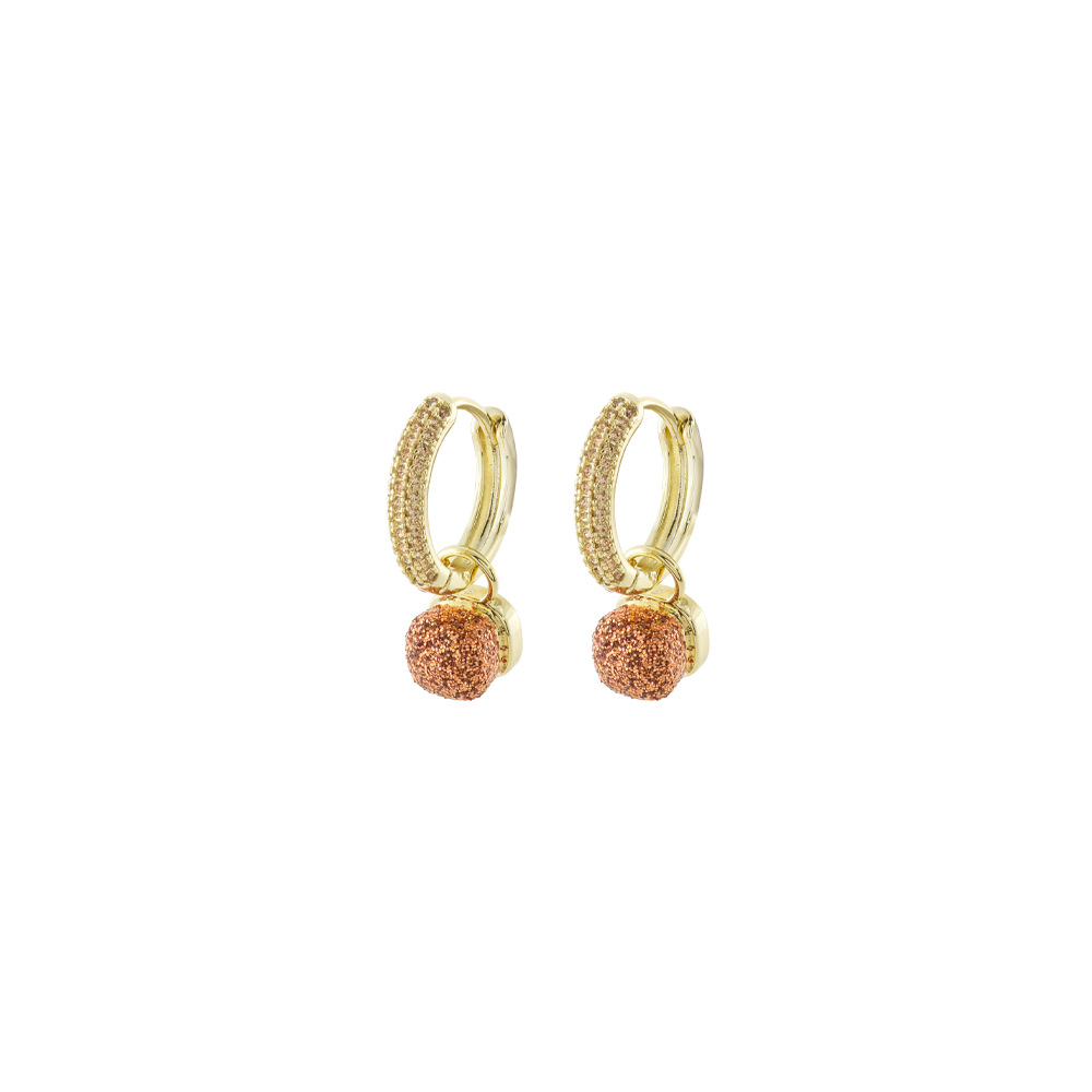 Cercei rotunzi placati cu aur de 18K cu elemente patrate si glitter maro Candy Festive