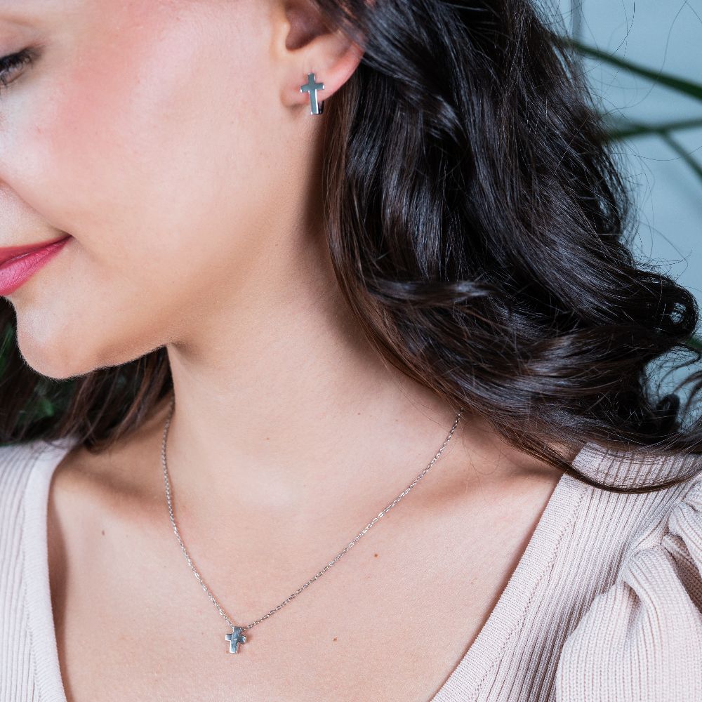 Cercei argint cu surub cruce Essentials, SET 01V01-J2199, 03V01-J4471, Oxette Romania