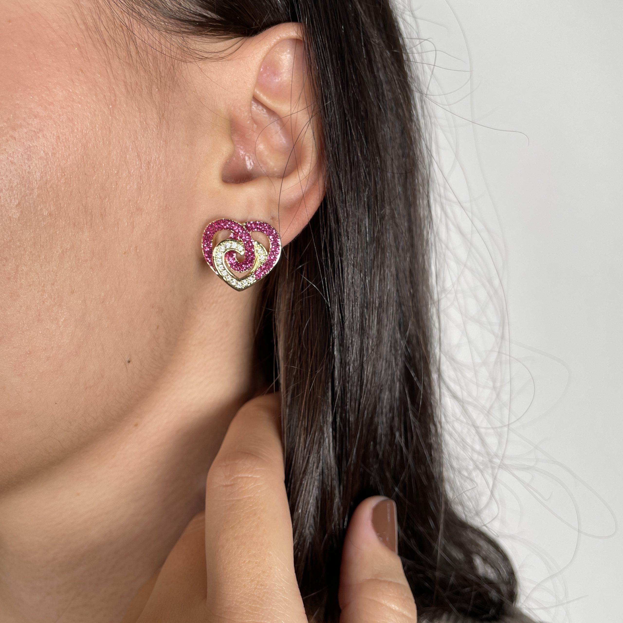 Cerceii se aseaza aproape de lob si ofera un accent luminos datorita combinatiei dintre glitterul roz si zirconii. Se potrivesc cu tinute usoare, in care forma inimii poate ramane vizibila, si completeaza bine un look feminin fara alte accesorii pronuntate in zona fetei.le.
