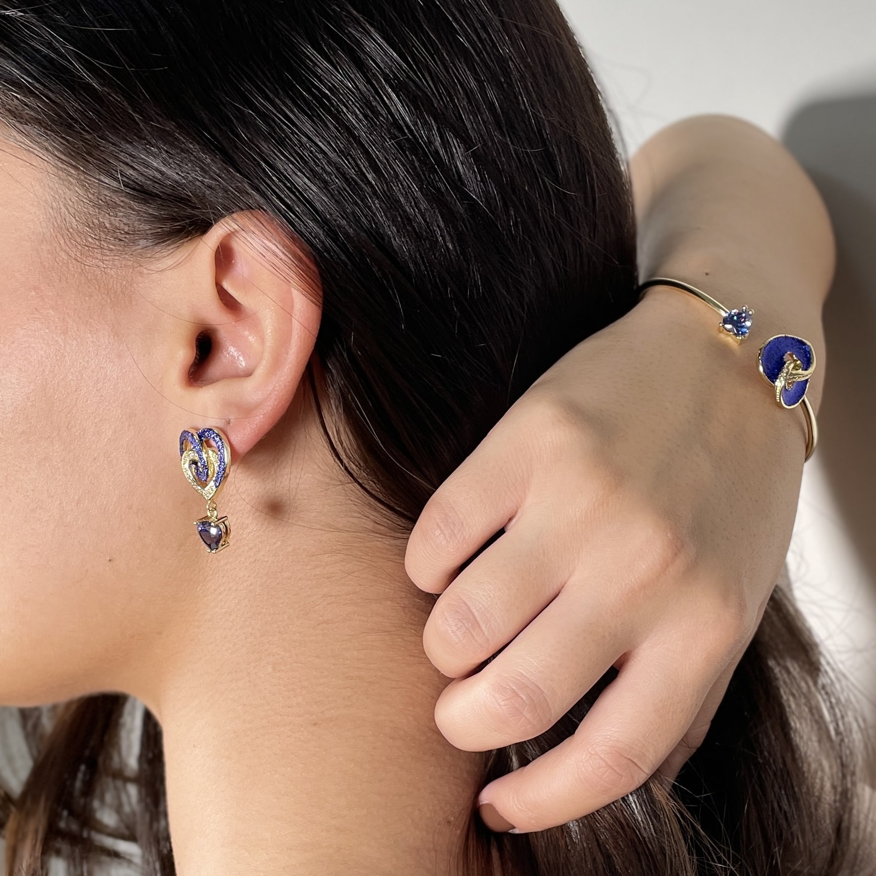 Cerceii aduc un echilibru intre stralucirea zirconilor si nota colorata a inimilor albastre, asa ca pot completa atat o tinuta de zi, cat si una mai rafinata. Arata bine purtati singuri, fara alte accesorii mari in zona fetei pentru ca detaliile lor sa ramana vizibile.