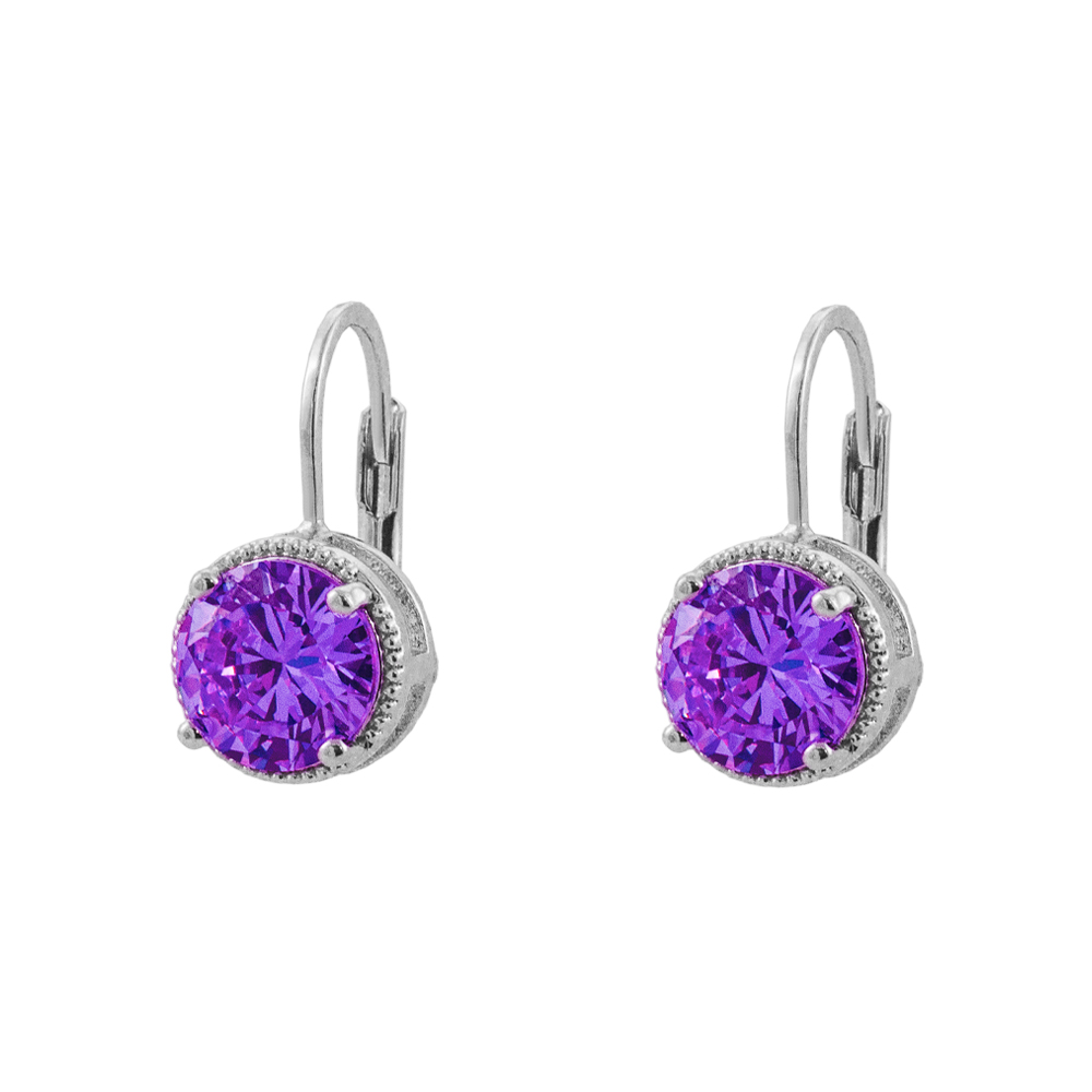 Cercei clasici placati cu rodiu si decorati cu pietre cubic zirconia violet Eleganza