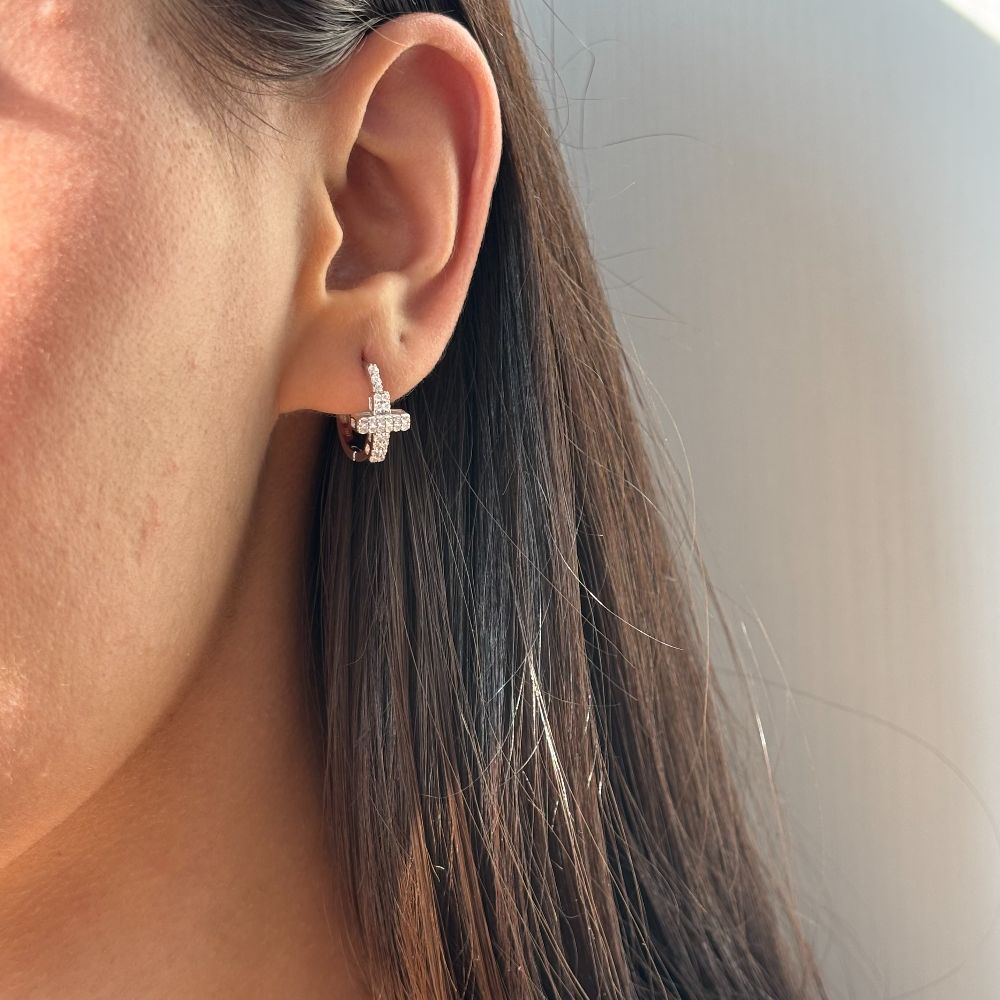 Cercei argint tip creole cu cruci si pietre cubic zirconia Essentials