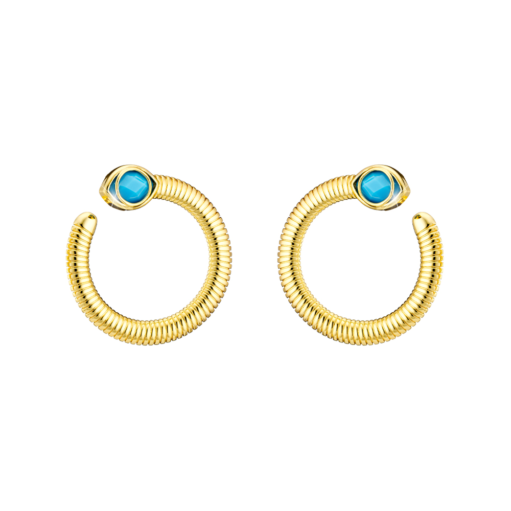 Descrierea produsului Cercei otel inoxidabil placat cu aur galben de 18 K rotunzi tip statement cu cristal turcoaz Extravaganza: