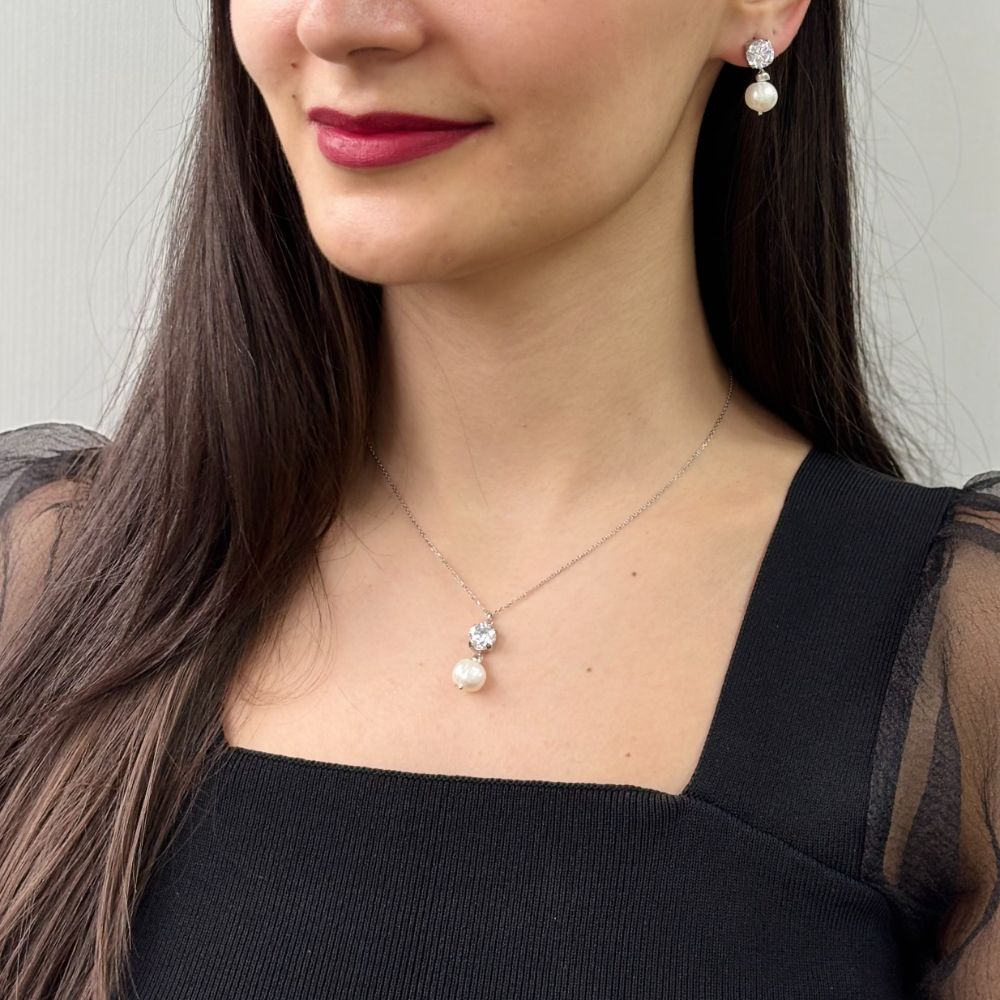 Colier argint cu perla de cultura si cubic zirconia incolora Gifting