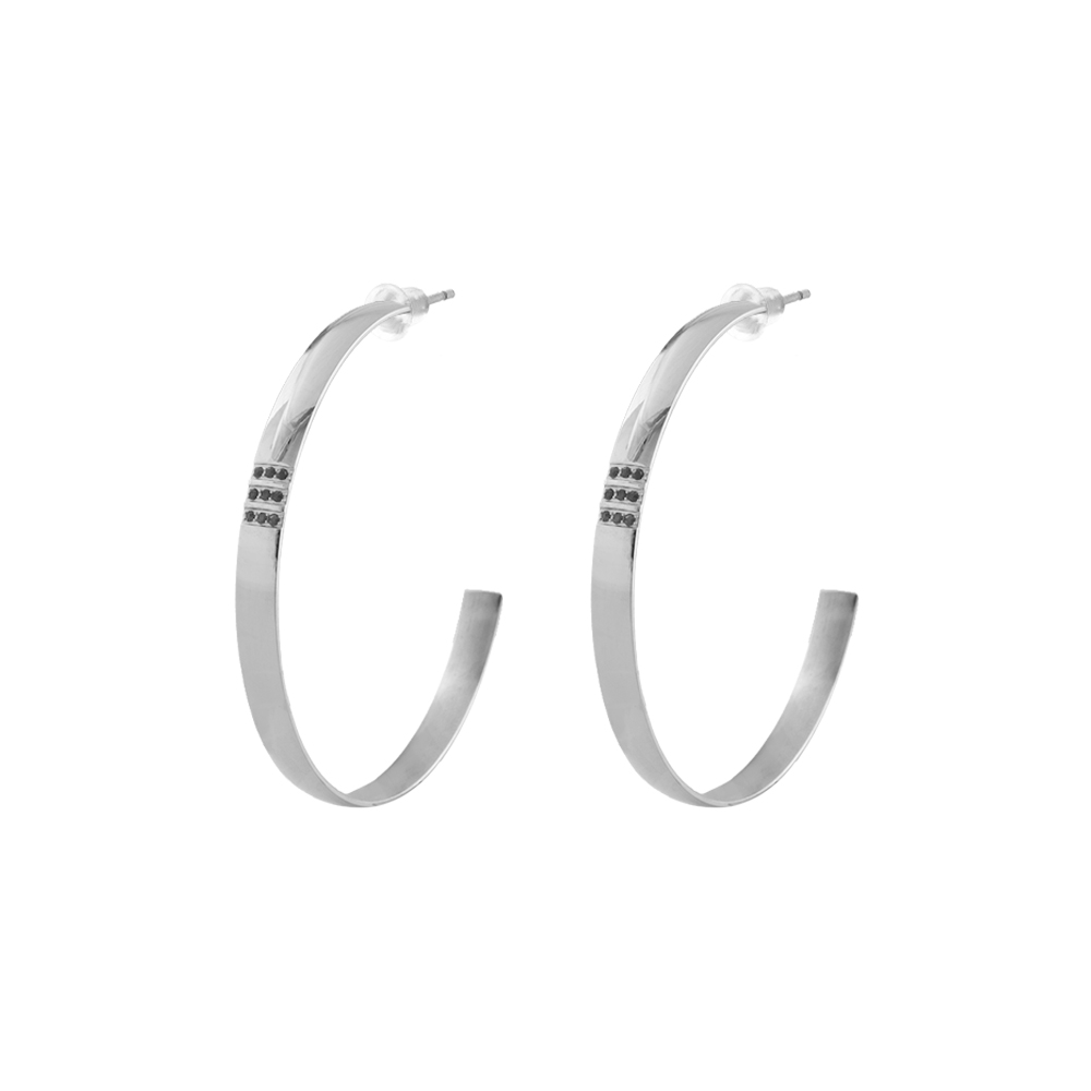 Cercei creole otel inoxidabil si zirconia negre Heavy Metal, 03X03-00123, Oxette Romania