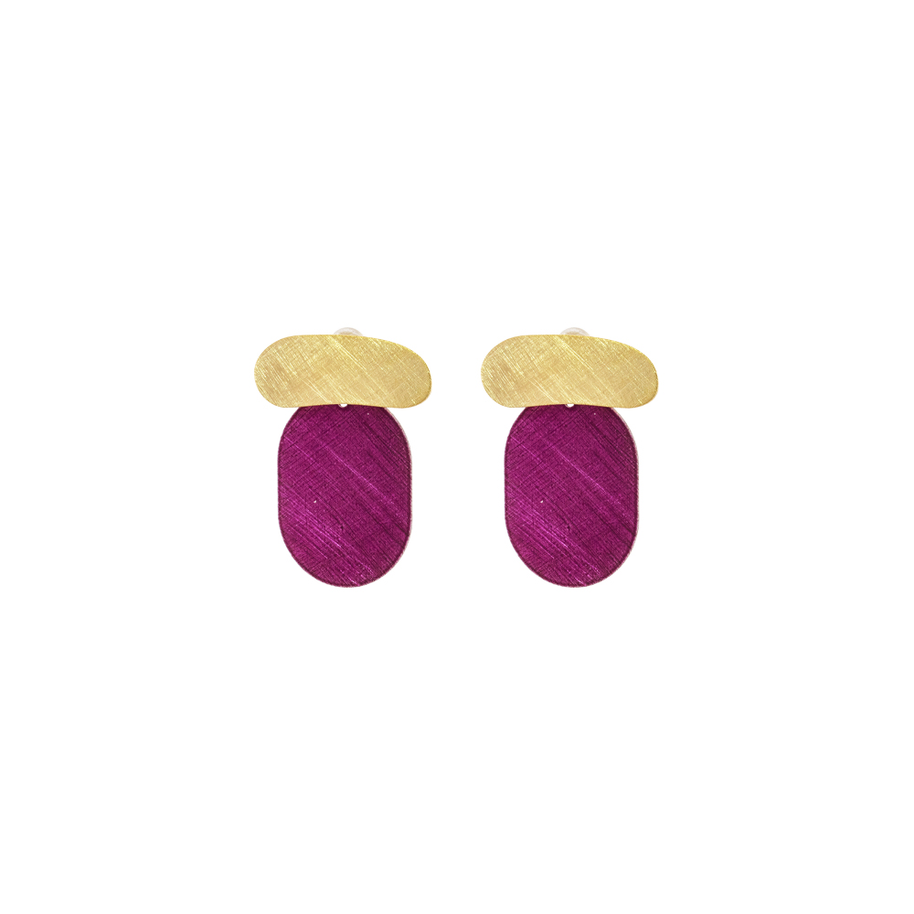 Cercei din argint 925 placat cu aur 18K decorati cu elemente mov in forma de ghinda.