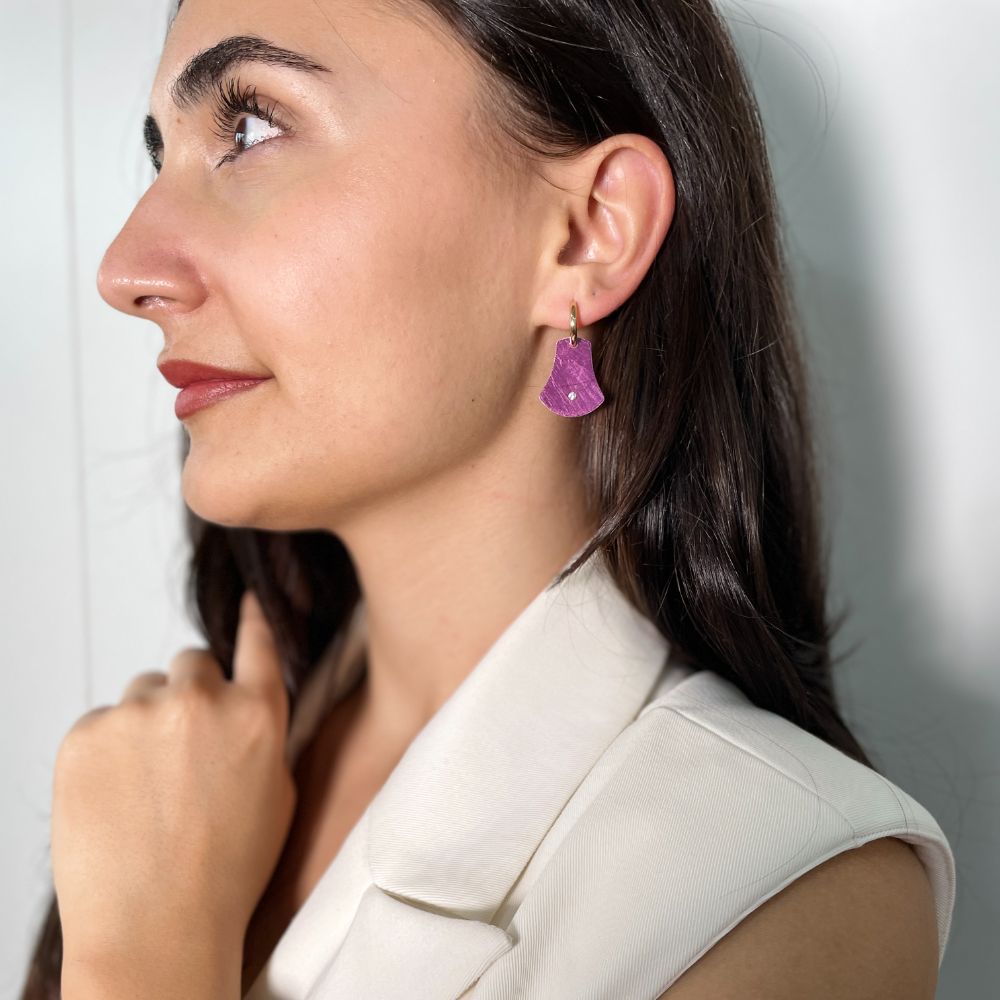 Cercei statement argint placat cu aur de 18K cu elemente mov Helianthus