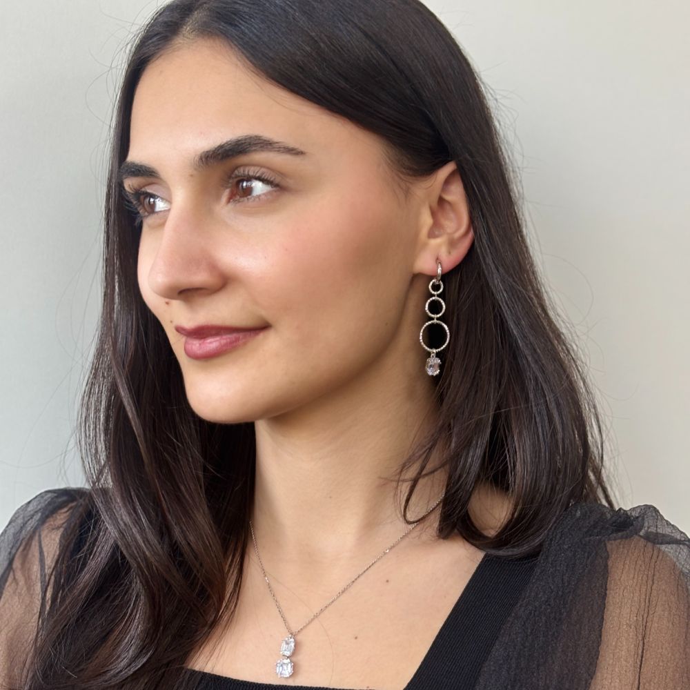 Cercei lungi argint cu zale si pietre cubic zirconia incolore Jacky