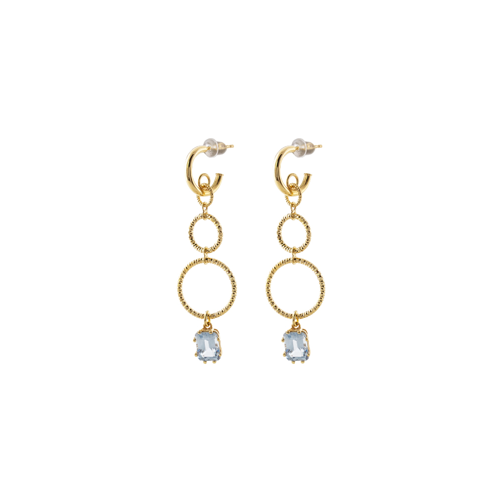 Descrierea produsului Cercei lungi argint placati cu aur 18K cu pietre zirconia albastre Jacky: