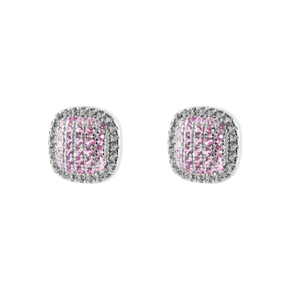 Cercei patrati din argint placat cu rodiu si decorati cu pietre cubic zirconia roz Kate