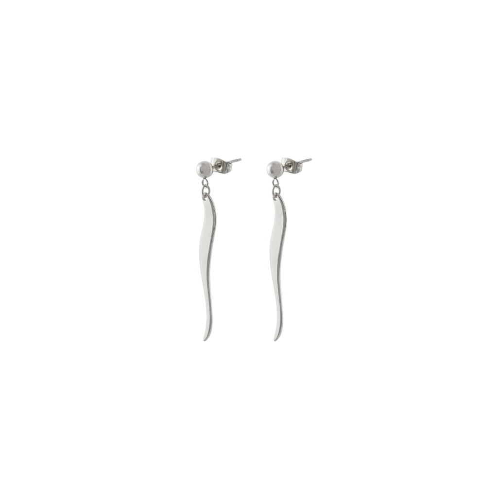 Cercei lungi realizati din otel inoxidabil placat cu rodiu.