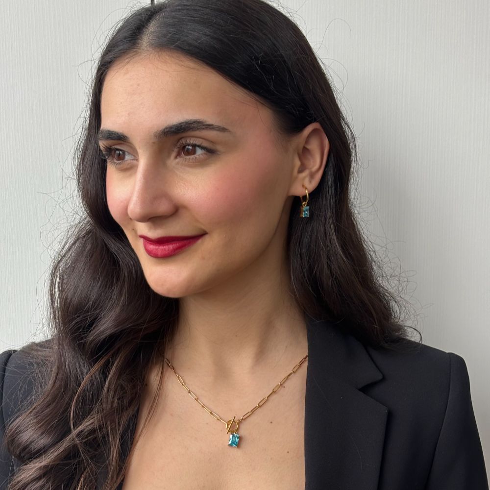 Colier dublu placat cu aur de 18K si agate turcoaz Mini