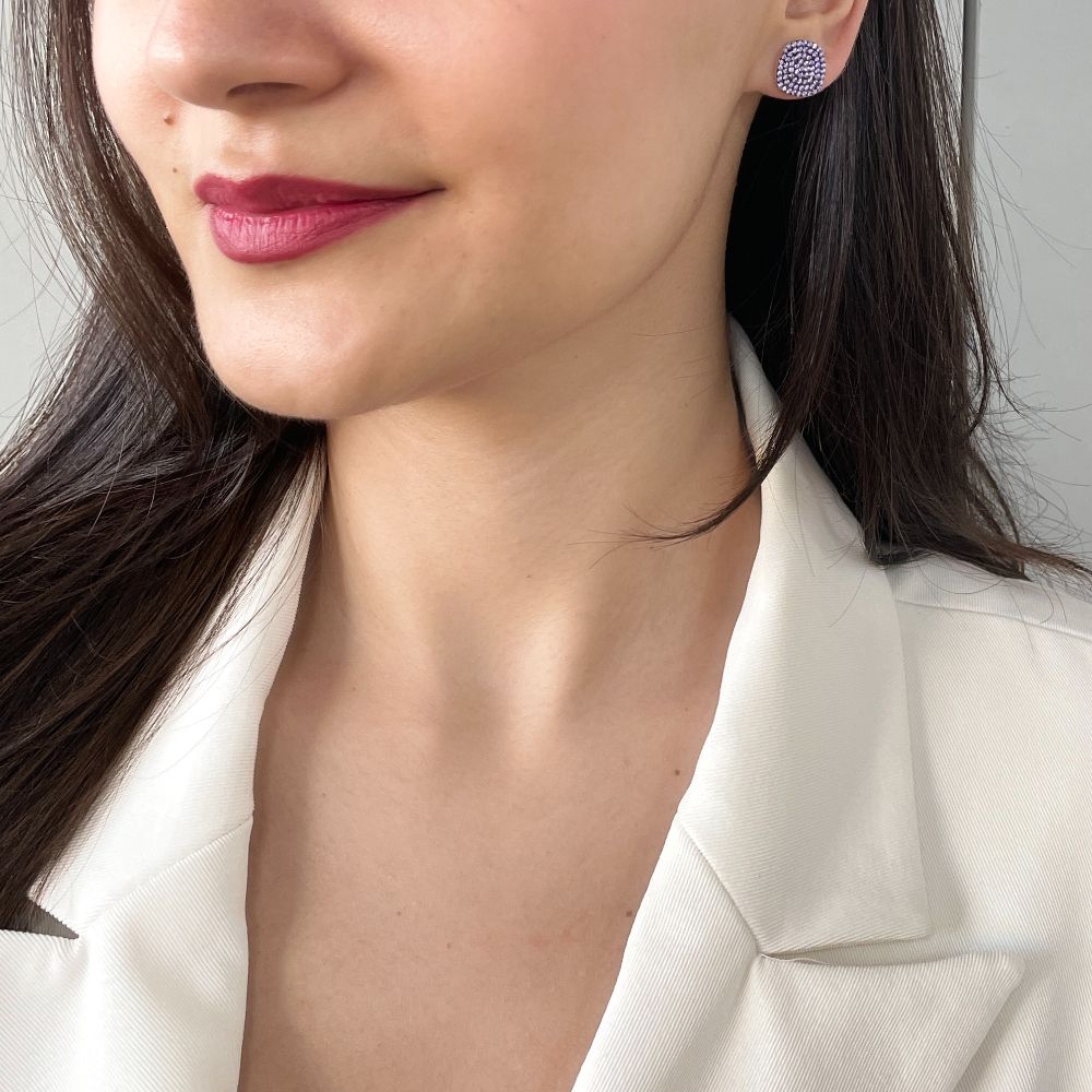 Cercei pe ureche realizati din argint 925 placat cu rodiu si presarati cu pietre cubic zirconia mov.